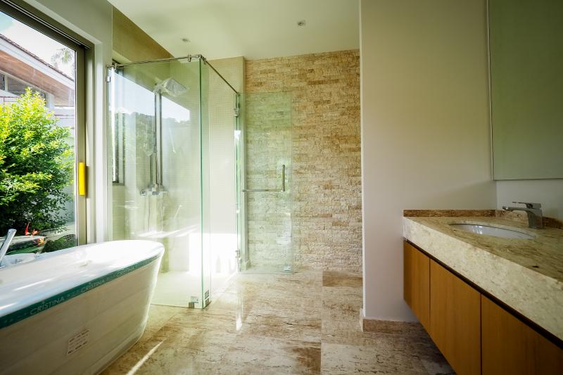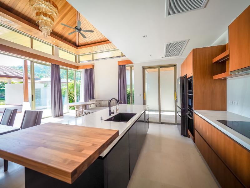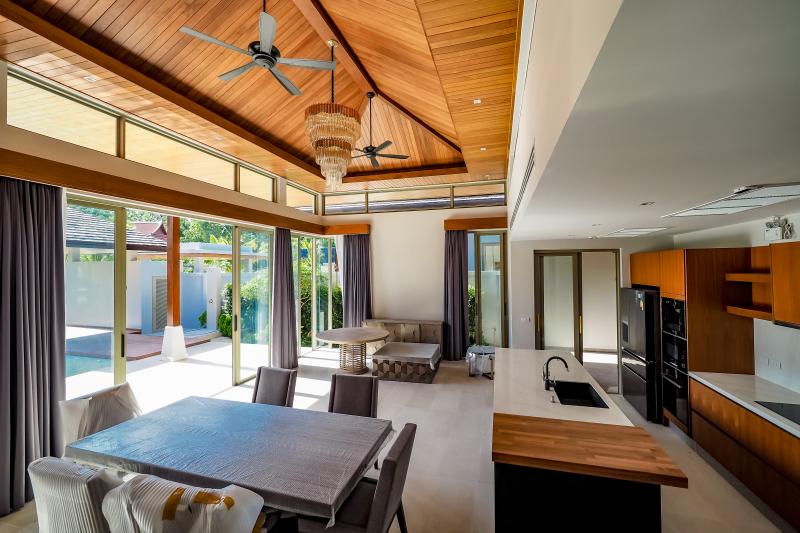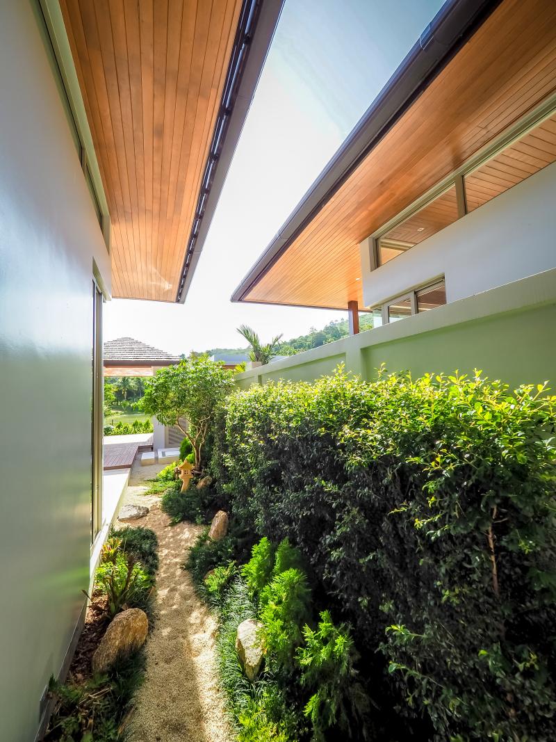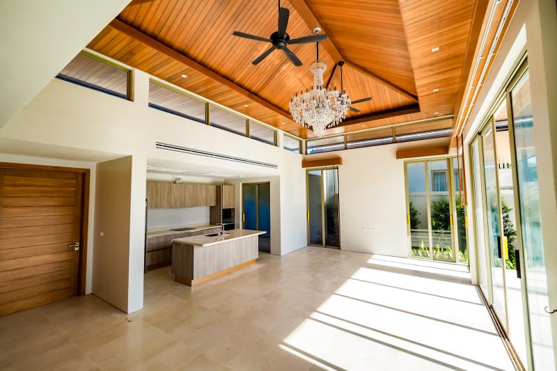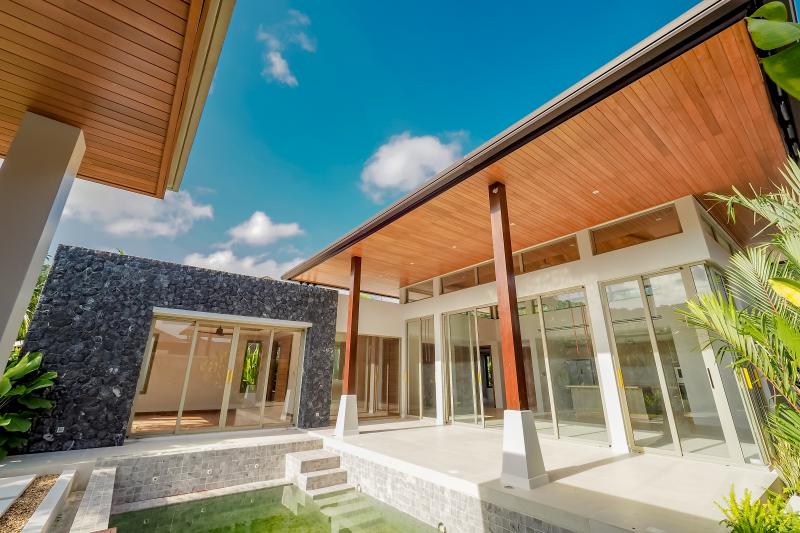 We envelops a natural stone-tiled swimming pool, which serves as the pièce de résistance to the free-flowing floor plan. The vaulted, teak wood ceilings create an elegant and authentic finish throughout the villas, while the concertina glass doors and transom windows above the doors add light and radiance to the main area of the home.